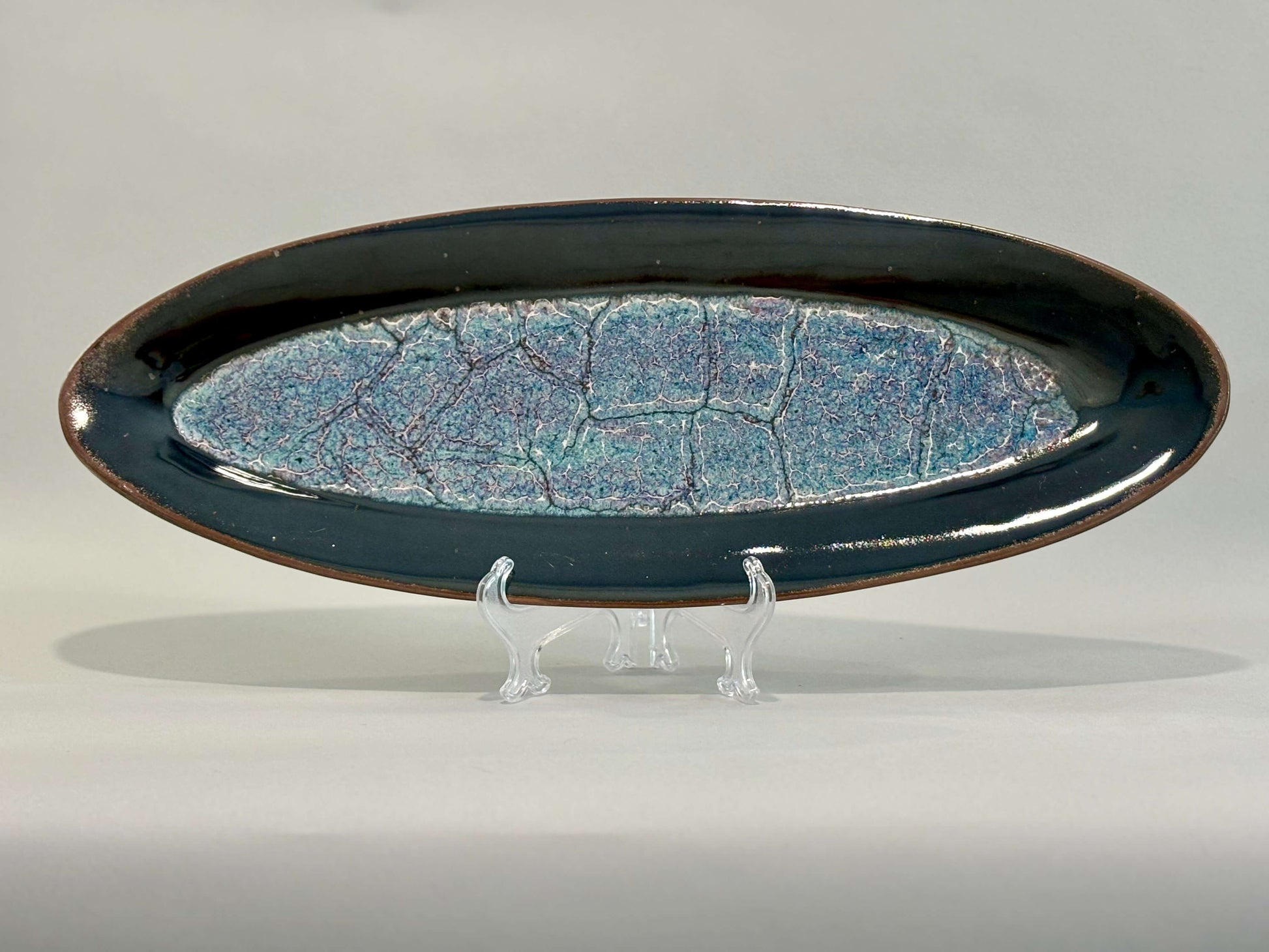 These stoneware platters measure 19” x 7” x 1” and make great serving pieces for both hot and cold items. Each is hand-crafted and signed by the artist. They are microwave- and dishwasher-safe.